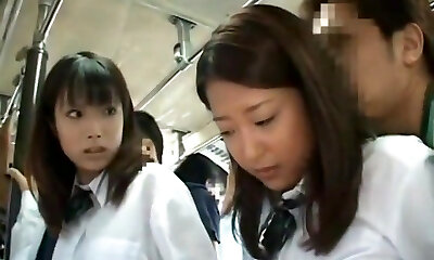 young jap schoolgirl is seduced by old dude in bus