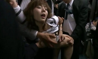Busty, Asian brown-haired is getting molested in a public buss, but she loves it a lot